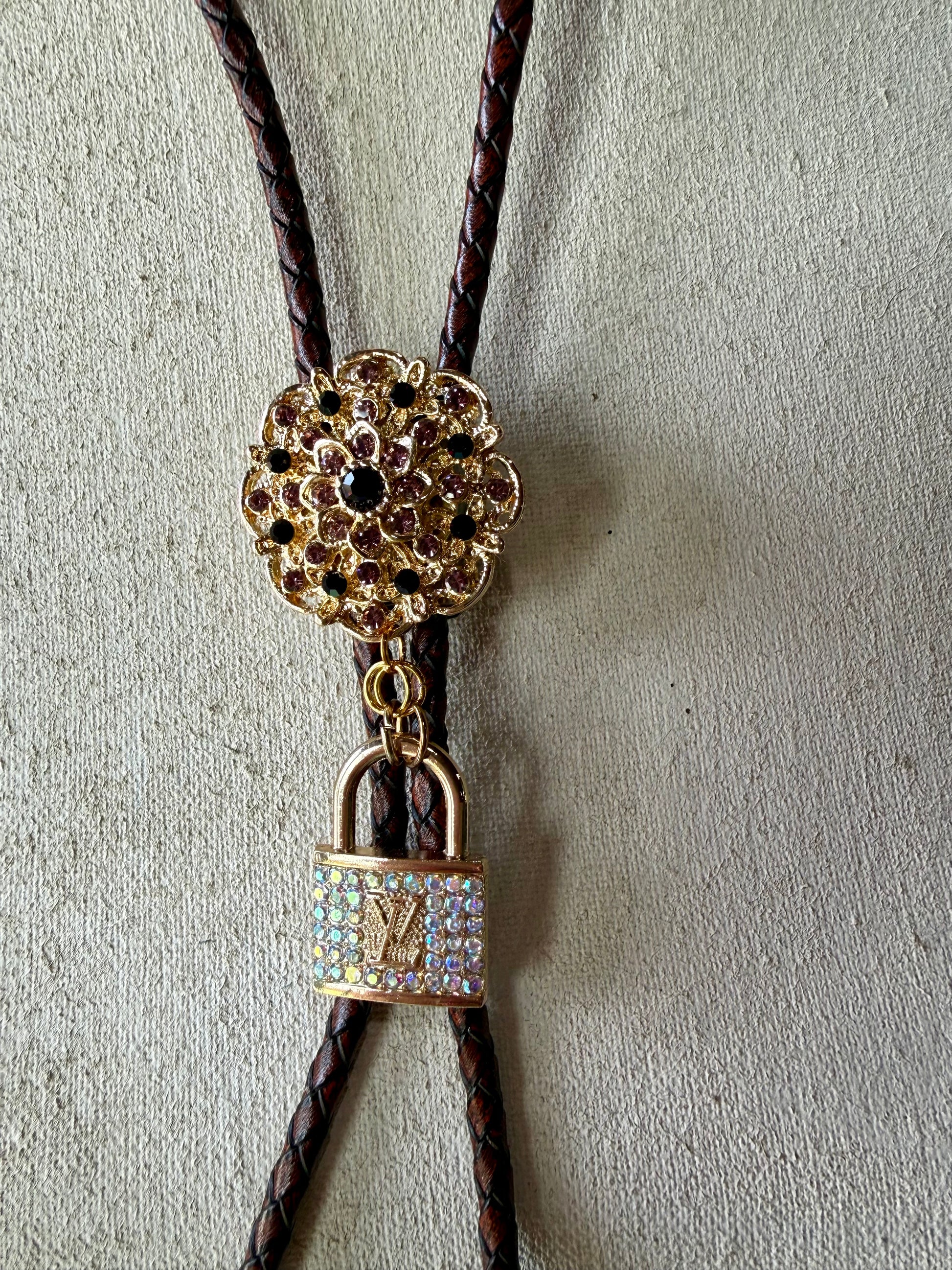 Spice up your wardrobe with a dash of cowboy charisma and a sprinkle of retro flair! This bolo tie, sporting a vintage Louis Vuitton zipper pull, mixes good ol' Western vibes with enduring style – it’s like a charming little art piece that’s bound to snag you some compliments on your adventures! Add a dazzling centerpiece to your ensemble and tote around a slice of Southwestern sunshine and tales every time you rock it.